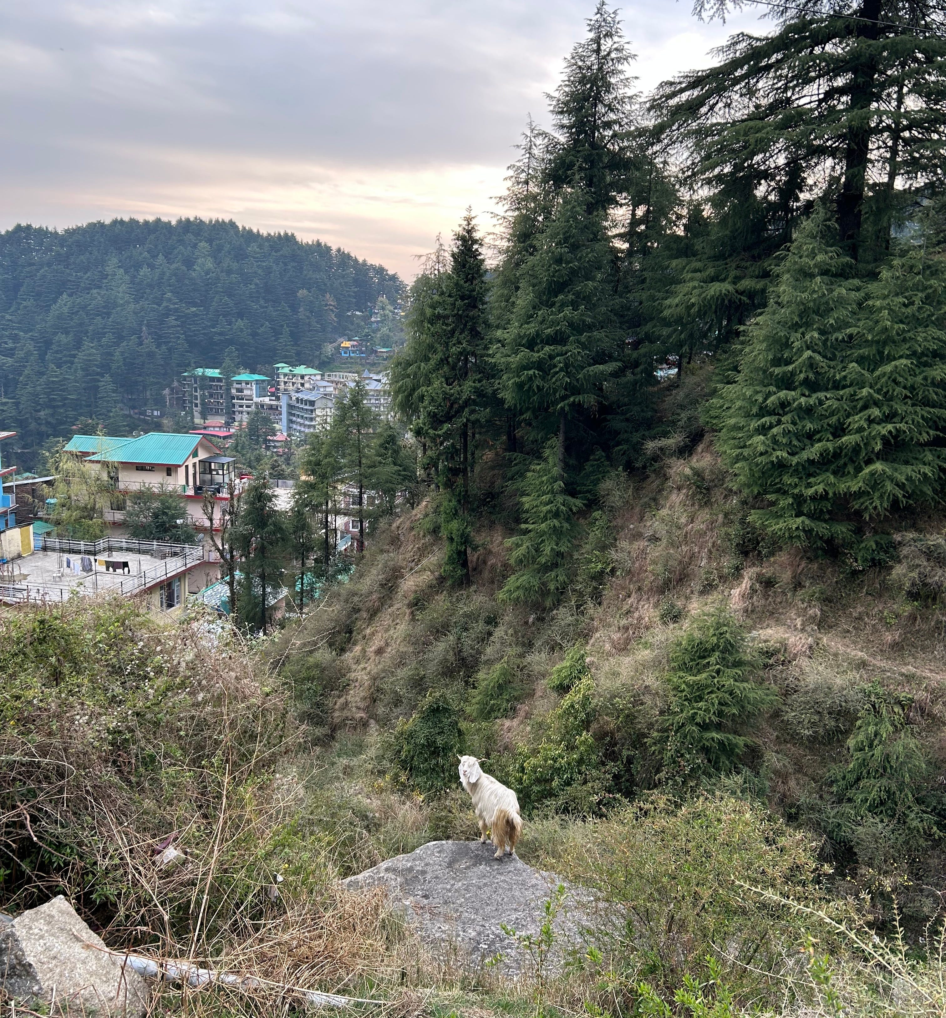 It was then, as I was stomping around a gorgeous Himalayan hillside like a petulant child, that I turned a corner and saw, perched on a rock jutting out into the ravine below, a goat. His snowy curls flopped down over his eyes like a moody teenager’s bangs, and long downy tresses fell from his back. He turned and looked up at me, chewing some foliage nonchalantly.