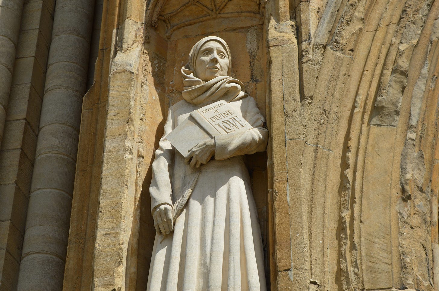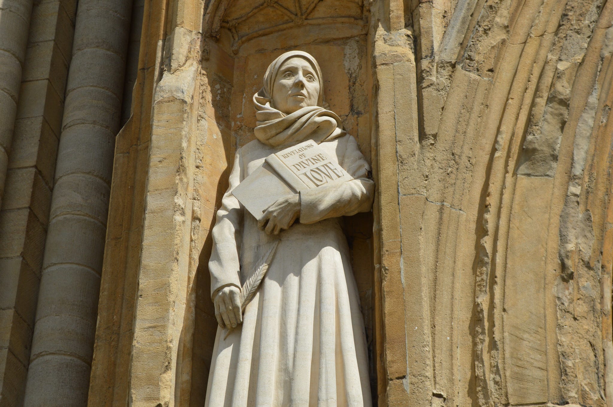 In the late 14th century in Norwich, England, following a profound encounter with the divine, a young woman had herself permanently sealed in a stone chamber attached to a church. She had been gravely ill, on the brink of death, when her priest — a kind of gatekeeper between laypeople and God — administered last rites, essentially releasing her from the earthly realm. It was in these moments, having been granted direct access to the empyrean, that the woman we now know as Julian of Norwich received a transmission that changed the course of her life. Miraculously, she survived, and chose to dedicate the rest of her days to understanding and sharing her experience. She became an anchoress, entombed in a chamber with windows only for exchanging chamber pots, food, and spiritual advice. In a radical act for a woman of her time, she wrote it all down — both to understand it and to preserve it. Her writings, now known as Revelations of Divine Love, are the earliest surviving English-language works by a woman that we know of, as well as the only surviving English-language works by an anchoress.